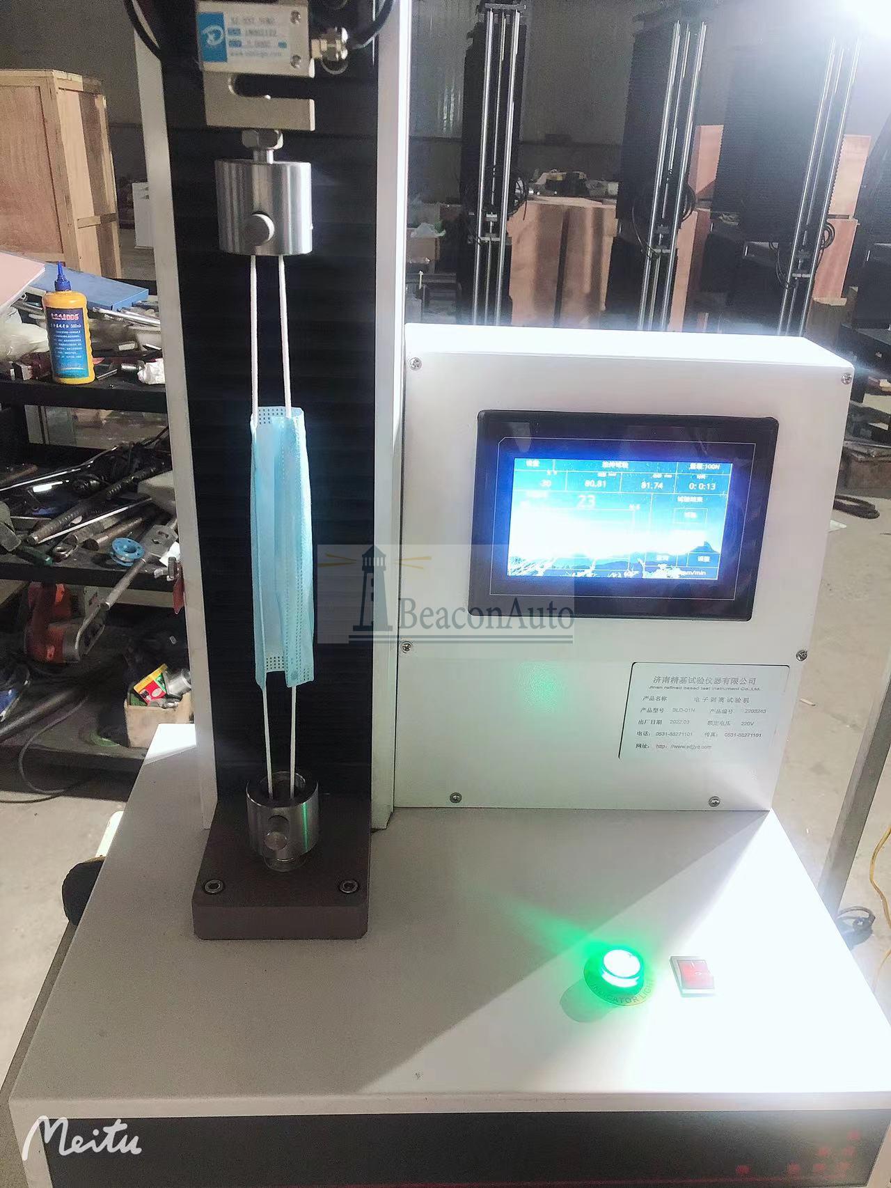 口罩隔離防護服拉伸剝離試驗機 產品型號:WDL-05 口罩隔離防護服拉伸剝離試驗機產品用途: 口罩隔離防護服拉伸剝離試驗機廣泛應用于醫用口罩,防護隔離服,口罩包裝袋,橡膠、塑料、紡織物、防水材料、無紡布等非金屬材料及金屬絲、金屬箔、金屬片的壓拉伸撕裂性能試驗。 口罩隔離防護服拉伸剝離試驗機產品特點:1、采用高精度、全數字調速系統及精密減速機, 驅動精密絲杠副進行試驗,實現試驗速度的大范圍調節, 試驗過程噪音低、運行平穩。 2、萬向節采用十字插銷結構,而且具有擺角限制功能, 一方面便于試樣夾持,保證試驗同心度, 另一方面很好的消除了不規則試樣對傳感器的影響。 3、觸摸鍵操作方式,液晶顯示器實時顯示。 顯示界面可顯示試驗方法選擇界面、試驗參數選擇界面、試驗操作及結果顯示界面和曲線顯示界面,方便快捷。 4、可實現試樣裝夾時橫梁快慢升降調整,具有過流、過壓、過載等保護裝置。 5、選配微機接口,可外接微機實現試驗過程的控制及數據的存儲、打印。