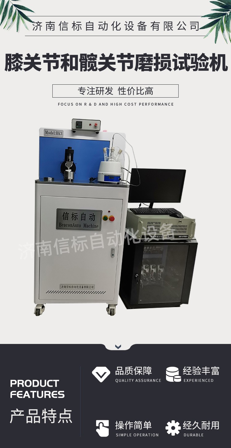 濟南信標自動化設備有限公司主要生產:動靜態萬能疲勞試驗機,接骨板彎曲試驗機,縫合線拉伸疲勞試驗機,髖膝關節磨損試驗機,電子萬能試驗機、液壓萬能試驗機、巖石三軸、四軸,電液拉力試驗機,材料試驗機,高低溫蠕變,高低頻疲勞,拉伸、扭轉、杯突等二十多個系列兩千多個的品種。