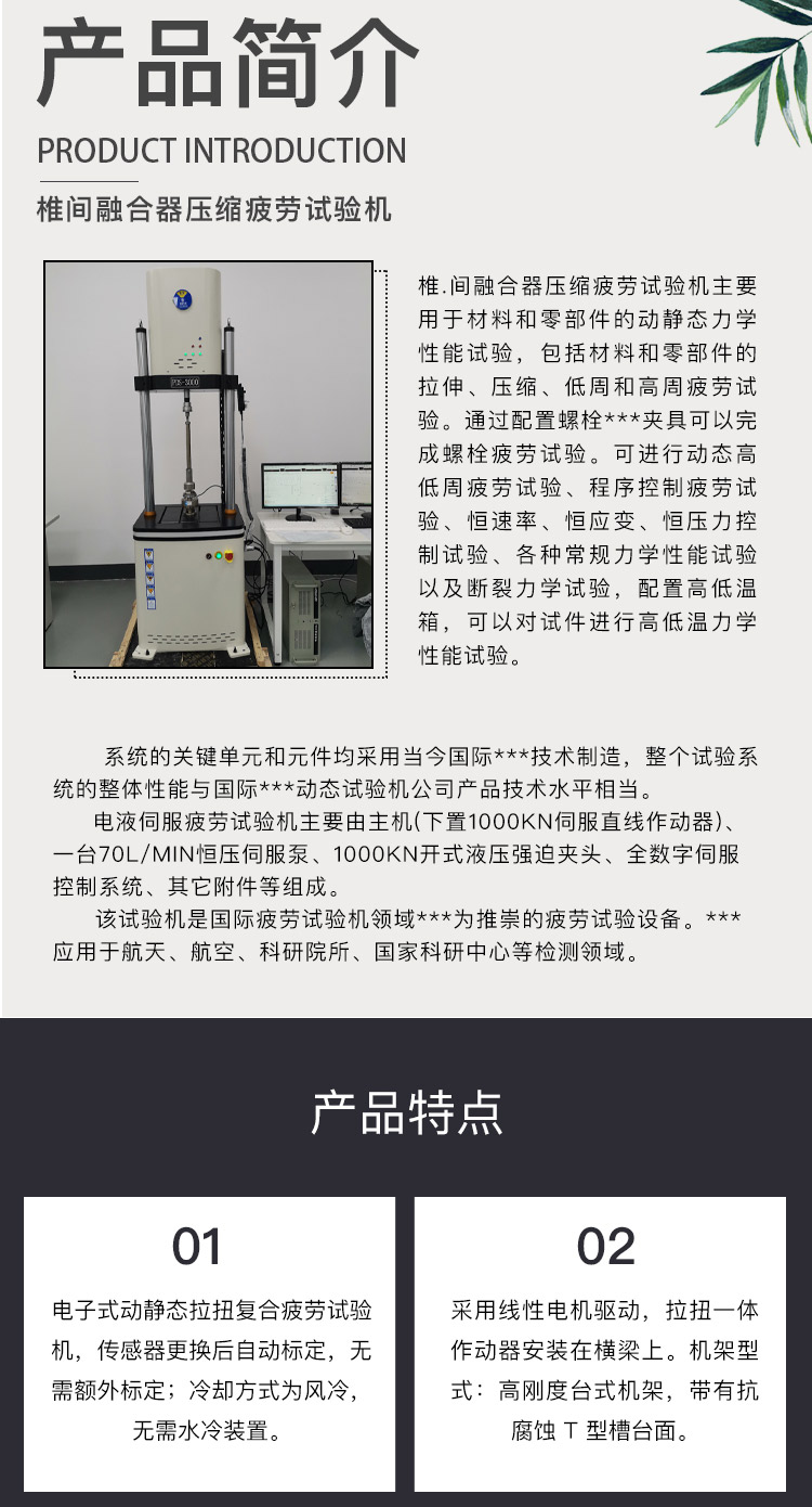 人造膝關(guān)節(jié)疲勞試驗機(jī)椎間融合器脊柱固定器拉伸壓縮彎曲扭轉(zhuǎn)測試