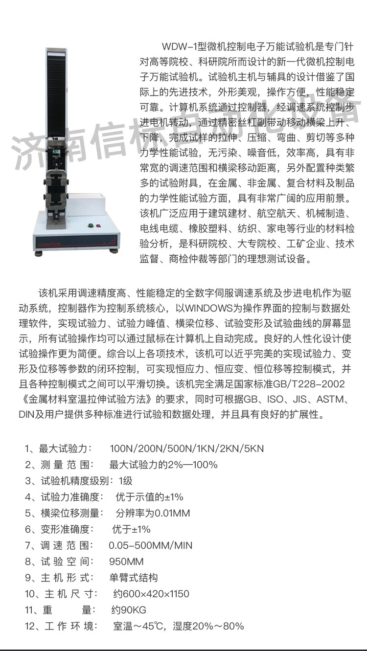 1、最大試驗力:    100N/200N/500N/1KN/2KN/5KN