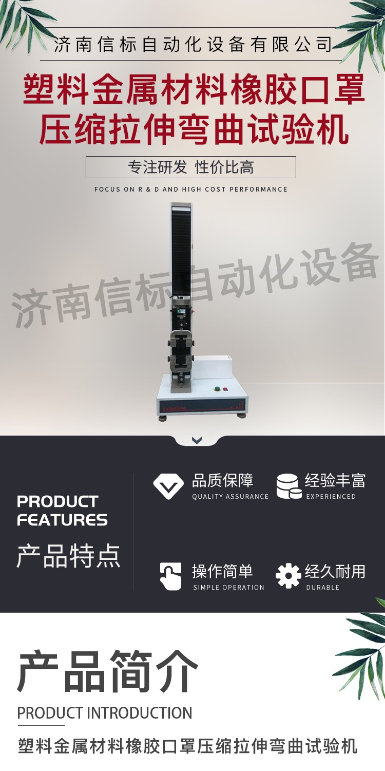 金屬材料壓縮彎曲實驗口罩塑料拉伸強度試驗機主要功能及特點: